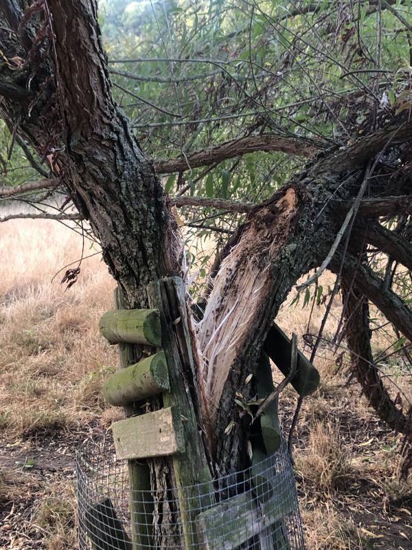 Der linke Baum macht dem Namen Kugel-Bruchweide alle Ehre. Der Baum ist heute nacht in der Mitte durchgebrochen. :o