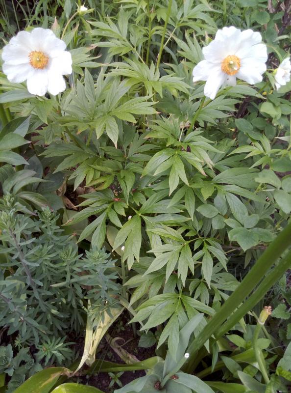 Paeonia tenuifolia x mascula öffnet ebenfalls die Blüten. :D