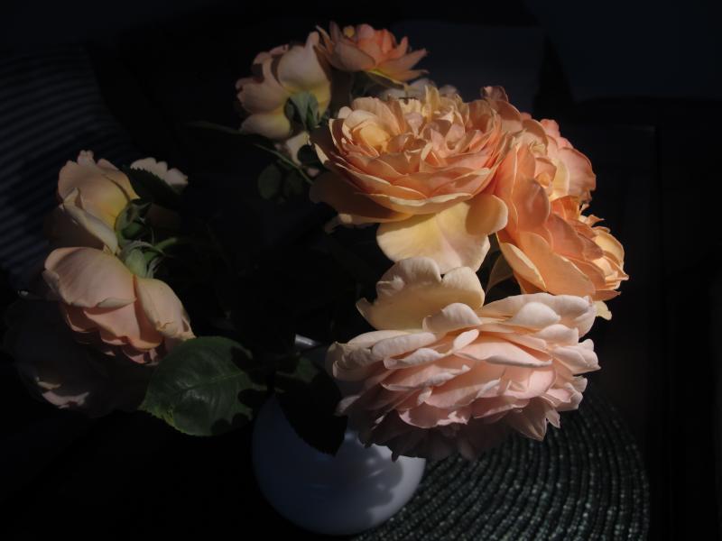 Am WE gekauft, gefällt sie mir in der Vase immer besser, feiner Duft. Leider wußte man am Rosenstand keinen Namen, vielleicht aber jemand hier von der Apricotfraktion :)? Das Foto mußte ich wetterbedingt bei Kunstlicht machen.