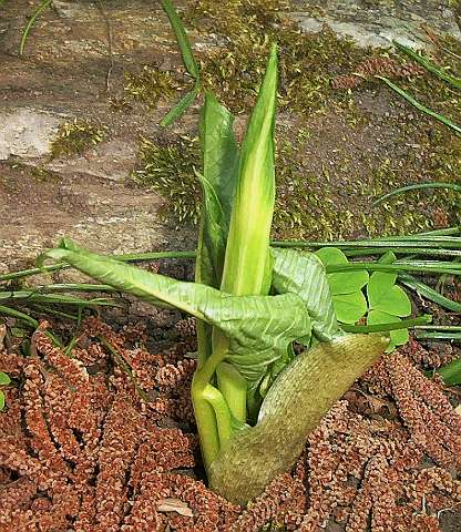 ...als spec. erhalten, aus samen gezogen und erstmals letztes jahr geblüht....könnte auch ein amurense sein. im garten habe ich 2 formen des amurense...grüne spatha mit weissen streifen und grünem spatha-"deckel" (die meisten) und welche, bei denen die innenseite des spatha-deckels braun ist.norbert