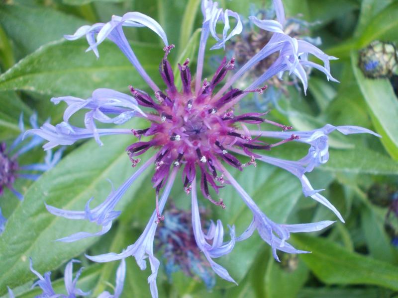 Phyteuma orbiculare, kugelige Teufelskralle - allerdings im Topf, denn im Beet hatte ich sie fast verloren, den Täter vermute ich bei den Schnecken. Einen winzigen Rest gerettet und nun endlich, im zweiten Jahr schön vermehrt, blüht sie.
