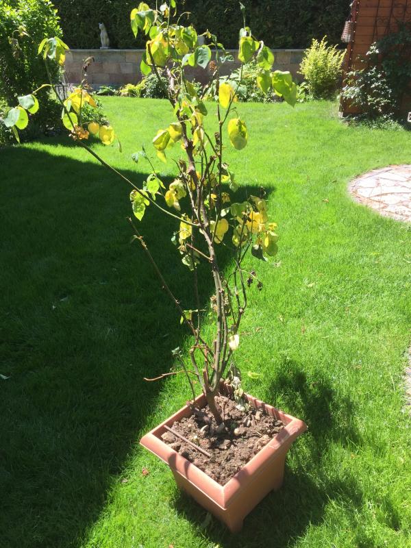 Die Triebe sollten auf ca 30-40 cm zurück genommen werden. Jetzt - Ende Mai hat die Pflanze noch ausreichend Zeit, neu auszutreiben und ein neues Gleichgewicht zwischen Wurzel- und Blattmasse her zu stellen.