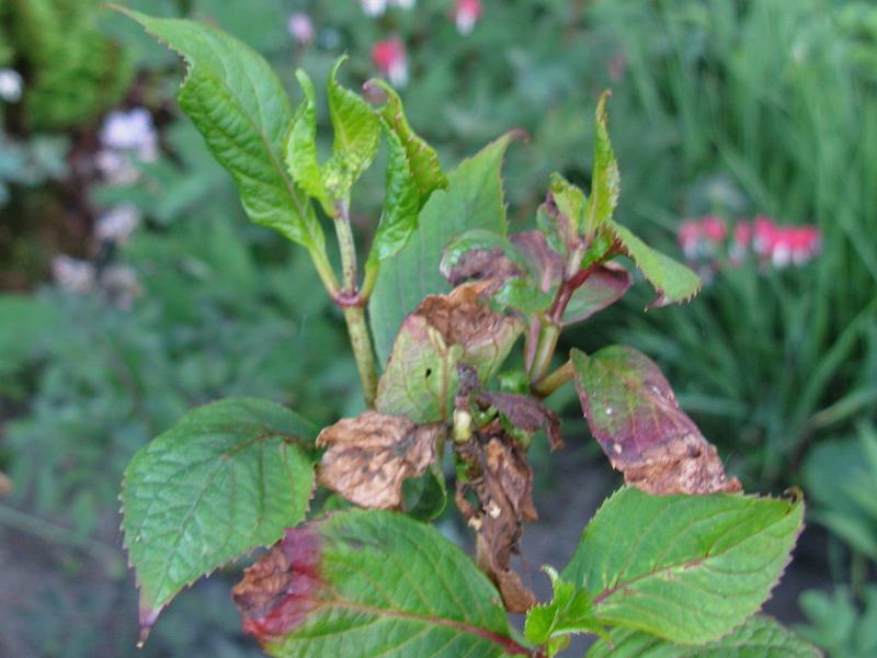 Eine Hydrangea serrata sehen allerdings auch arg gebeutelt aus.