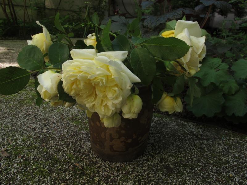 Am WE bei einem Stand am Markt gekauft - dieselbe Quelle, von der ich letztens das Meraner Röschen hatte -, inzwischen die vielen Knospen aufgegangen und schon fast verblüht: Eine angeblich riesige Strauchrose - da wurden locker mind. 20 Sträuße geschnitten - ohne Duft, Blüten 9-10 cm groß, kerngesund, dem Laub nach wohl nicht sehr alt, sehr gesund. In Wirklichkeit viel reizvoller als auf dem Foto. Hat jemand eine Idee?