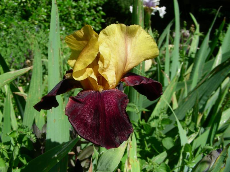 Eine meiner frühesten Identifizierungen einer Namenlosen war mal diese als `Rheingauperle´, im Nachblick natürlich nichts allzu Anspruchsvolles. Dieser Tage habe ich das aber endgültig wieder beerdigt, seit fünfzehn Jahren wachsen Pflanzen dieser Iris neben Rheingauperlen aus Laufen. Kleine Unterschiede waren noch erklärbar, jetzt zeigt sich aber, dass diese Pflanzen einen kräftigen langblättrigen Horst bilden und offensichtlich blühen, die anderen kurzlaubiger, lockerer im Wuchs und, vor Allem, ihnen die Blüten komplett abgefroren sind.