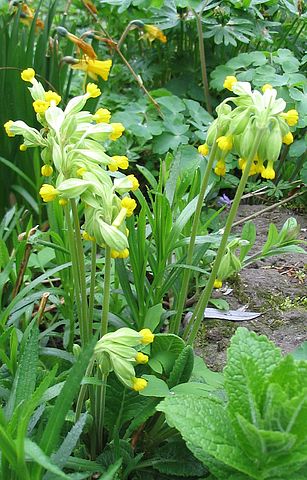 Primula elatior mit den hellgelben Blüten kommt auf neutral bis sauren Böden vor (so bis 15cm hoch). Dagegen die goldgelb blühende P. veris mit dem aufgelasenem Kelch nur auf basischen Böden (um die 20cm hoch). Die hohen Formen von P. veris in Kultur gehören meist zu P. veris ssp. macrocalyx. Die kann locker auf lehmig feuchten Böden auch 30cm hoch werden. Von denen existieren auch rote Typen, die wahrscheinlich schon hybridisiert sind.