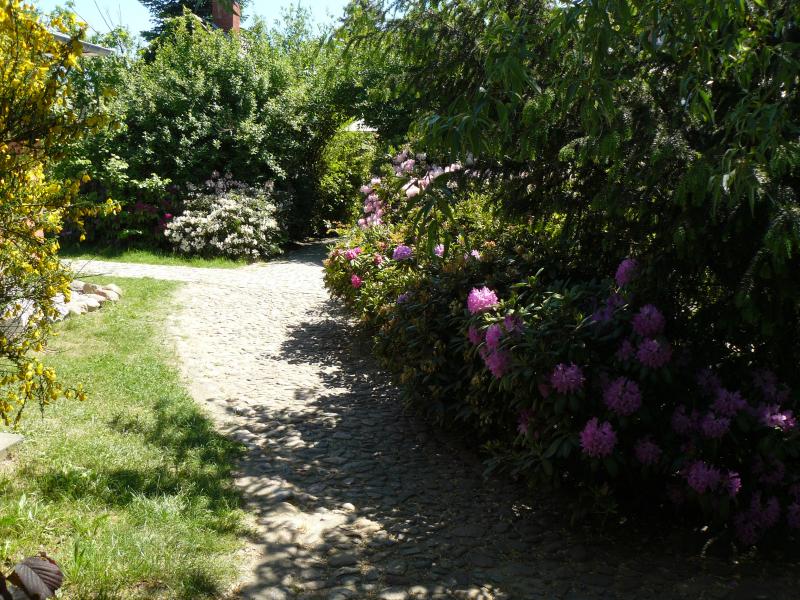Na klar, immer ran damit! Schöne Bilder, am besten gefallen mir die so schön eingewachsenen Farne und Hostas und der unbefugt betretene Garten 😉.