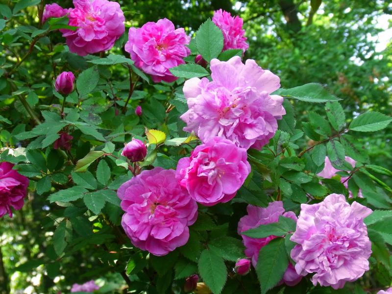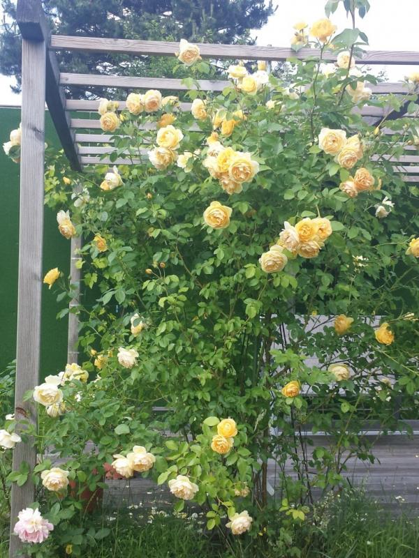 Ich zeige hier einmal den Rambler Hiawartha. Ich habe die Rose im Frühjahr 2014 neben einem Kieferstamm zur Krone geleitet. Es soll eine Höhe von bis zu sechs Metern erreicht werden.
