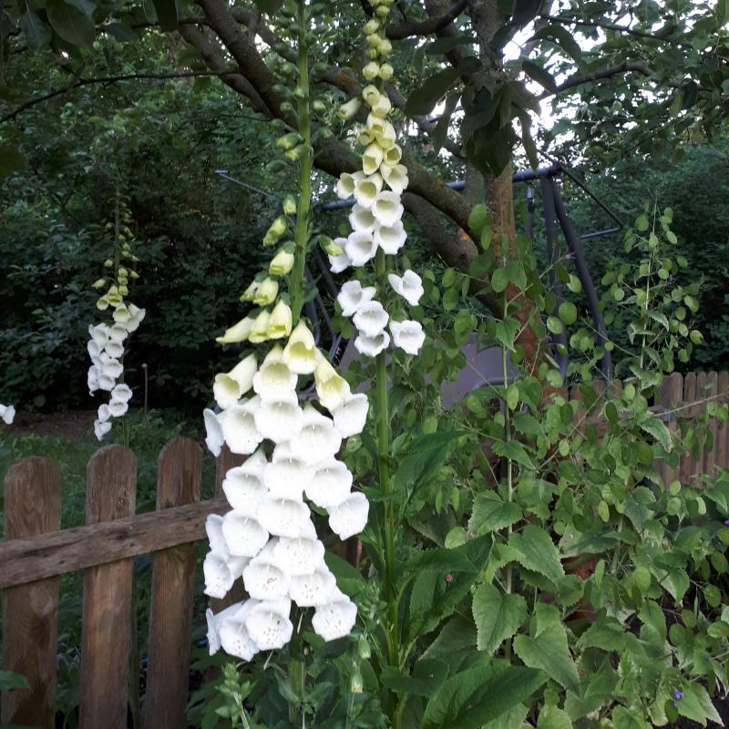 Und die weißen Fingerhüte im alten Garten werden immer mehr. Einer in rosa hat sich auch eingefunden. Ich überlege schon, ob ich ihn vor der Samenreife besser rausschmeiße...ich möchte die Weißen erhalten.