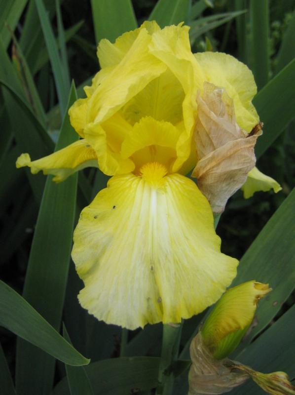 Hier blüht erstmals eine knatschgelbe hohe Iris, zu der ich keine Schild mehr finde. Gekauft habe ich irgendwann mal Ola Kala - könnte es die sein?