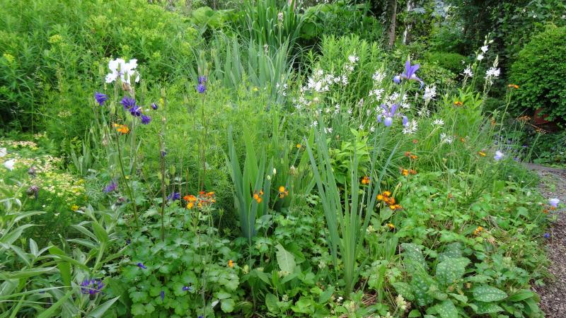 Der Garten bekennt viel Farbe jetzt anfangs Juni.