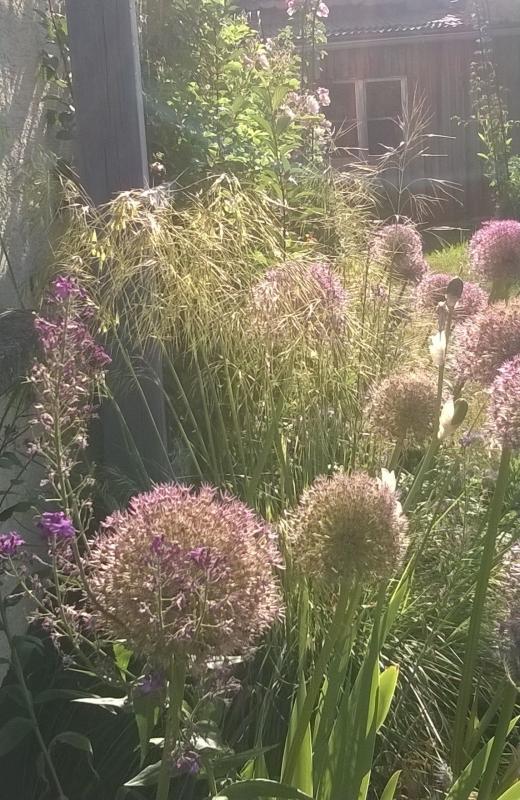 gelungen! Allerdings würde mir das ohne Rosen sehr viel besser gefallen. Speziell diese aggressiv rotorangefarbene ist völlig verzichtbar. Die einzige Hoffnung: Stipa gigantea wird das erledigen.