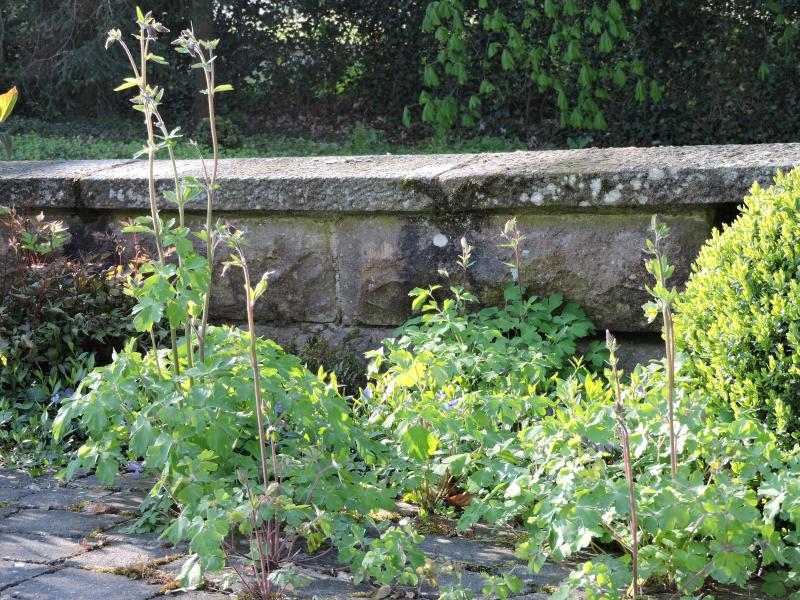 Hier hat sich vor etwa 3 Jahren Chiastophyllum oppositifolium in die Fuge der (hässlichen) Stützmauer gesät.
