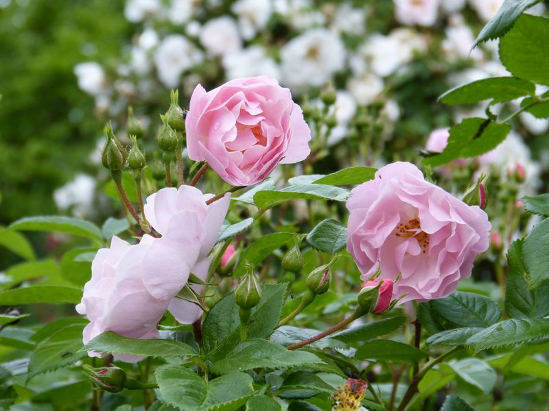 Schon vorbei sind: Rosa primula und Rosa pendulina, z.T. Myriancantha und glauca.