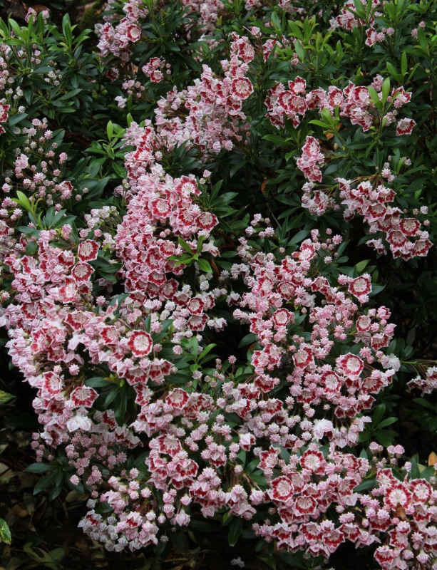 Kalmia latifolia funktioniert hier gut, es ist eine normale Sorte: weiss, leicht überhaucht. Hier seit Jahrzehnten völlig hart. Basel halt...