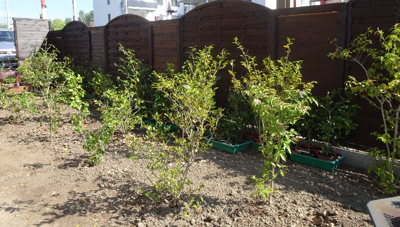 Dafür ein Bild gemacht. Eigentlich wollte ich sie nicht so eng pflanzen, aber beim graben der letzten Reihe fanden wir ein Betonrohr >:( . Das ist die Nord-Ostseite bei unserem Haus.