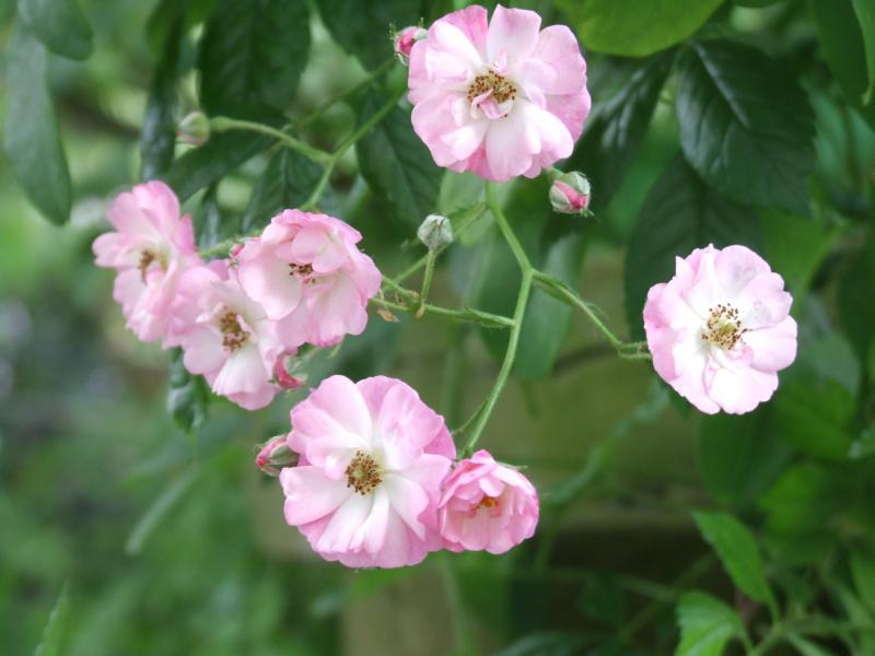 Es blühen: der Herkules, die Lady Salisbury (sehr spät dieses Jahr), die New Dawn am Rosenbogen (auch spät), Rhapsody in blue, Radio Times, St. Swithun, Felicite Parmentier, Acropolis, Novalis, Forstmeisters Heim, die Minerva, die Roseraie de l`Hay zickt wegen Frostschäden herum, Nova Zembla und Mme Ernest Calvat haben dicke Knospen, Stanwell Perpetual und Loise Odier blühen wunderbar. Gruß an Labenz, Magenta und Florence Delattre haben jetzt schon Knospen, obwohl erst in diesem Frühjahr gepflanzt.