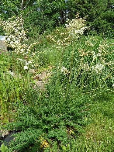 Und hiervon, ich bin mir nicht sicher, ob das Mädesüß ist, könnte ich auch was topfen. Außerdem noch einen Sämling vom Bergbohnenkraut und griechisches Buschbasilikum.