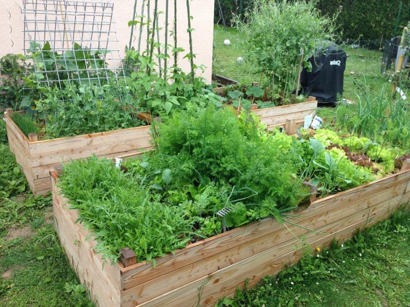 Mit meinen zwei Halbhochbeeten läufts super. Radieschen, Spinat und die erste Fuhre Salat ist schon abgeerntet, dafür gibts nun weitere Salate, Rattenschwanzrettich, Gurken, Fingermöhren und bald folgen die ersten Zuckererbsen und Kohlrabi.