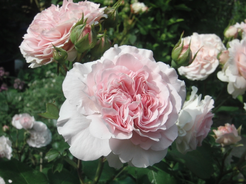 Es blühen: der Herkules, die Lady Salisbury (sehr spät dieses Jahr), die New Dawn am Rosenbogen (auch spät), Rhapsody in blue, Radio Times, St. Swithun, Felicite Parmentier, Acropolis, Novalis, Forstmeisters Heim, die Minerva, die Roseraie de l`Hay zickt wegen Frostschäden herum, Nova Zembla und Mme Ernest Calvat haben dicke Knospen, Stanwell Perpetual und Loise Odier blühen wunderbar. Gruß an Labenz, Magenta und Florence Delattre haben jetzt schon Knospen, obwohl erst in diesem Frühjahr gepflanzt.