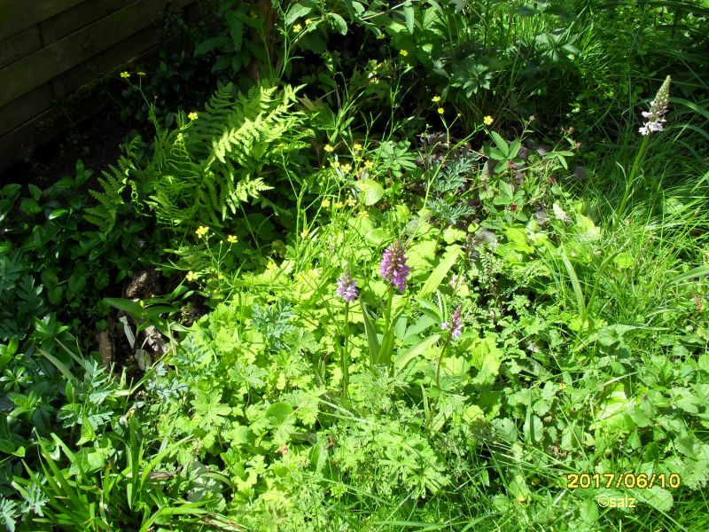 "Künstliche Wildnis" in meinem Torftopf. Geplant war das anders. Insbesondere die kleine Tiarella ist auf diesem fast dauerfeuchten Platz sehr ausbreitungsfreudig. Im Grunde hätte ich mir gar keine Moorbeetpflanzen zu kaufen brauchen ... ::) Wenigstens halten die Knabenkräuter, jetzt im zweiten Jahr, durch. Außerdem hoffe ich noch auf eine Bletilla und ein Epipactis.