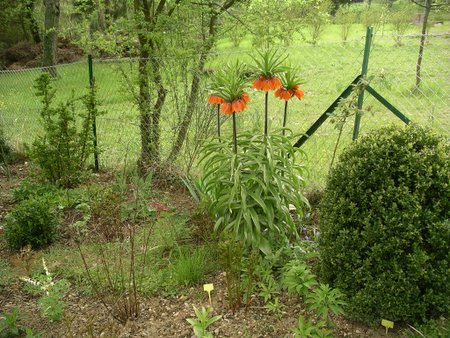 Bin dieses Jahr sehr stolz auf meine Kaiserkronen, und das obwohl ich sie letztes Jahr umsetzen mußt: hab sie sofort nach dem Absterben des Laubs rausgenommen und in einem großen Trog in trockener Erde zwischengelagert, nur um 6 Wochen später festzustellen, das alles bereits mit fleischigen weißen Wurzeln durchzogen war.Ich kann euch sagen, es war nicht einfach das Ganze ins neue Pflanzloch zu bugsieren - aber es hat wohl geklappt