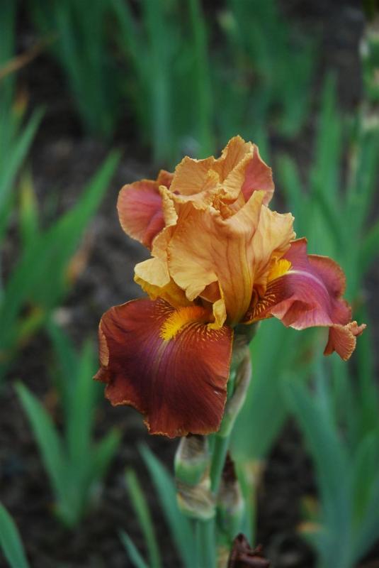 Color: Amber to cinnamon standards, red falls with yellow edging and orange beards.