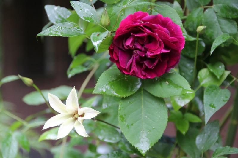 Und dann gibt es ja noch den guten alten William Shakespeare von Austin mit seinen gut duftenden großen Blüten in dunklem rotviolett. Der Wuchs ist ein wenig sparrig, aber die Pflanze kann schon 2 m erreichen. Allerdings ist sie nicht überall immer blattgesund.