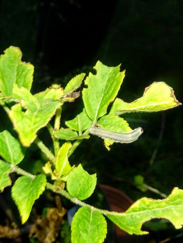 Ich habe zur Zeit eine Invasion grauer Raupen am Salomonsiegel, der Ärmste ist schon fast aufgefressen, sie sehen deinen im Körperbau sehr ähnlich und mein GöGa, Schmetterlingsliebhaber und Raupenkenner, meinte, das seien keine Falter, sondern Blattwespenraupen. So fand ich sie im Netz.