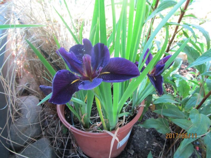 Hier mein Baumarkt-Exemplar: in Wirklichkeit handelt es sich um Iris louisiana 'Black Gamecock'