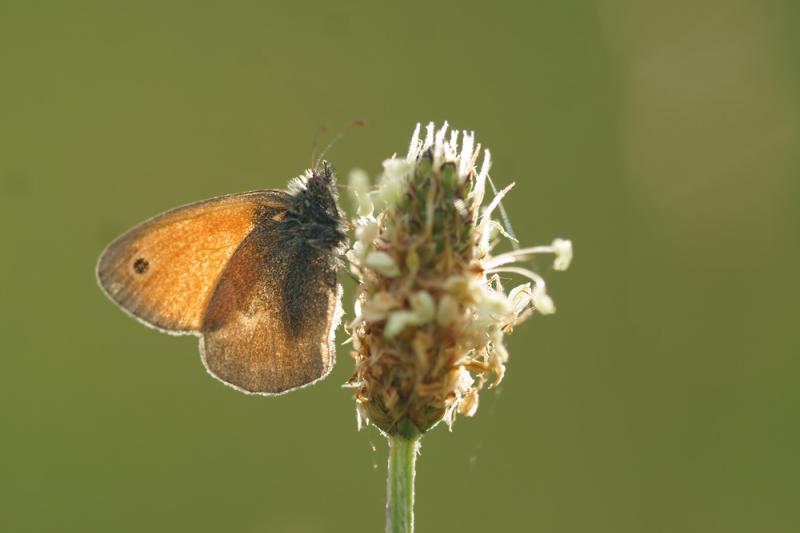 Hier erschien gestern das erste Große Ochsenauge, Maniola jurtina des Jahres, ein Männchen mit geringten Augen, nicht unbedingt typisch aber trotzdem sicher bestimmbar.