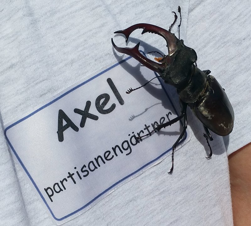 besonders beeindruckt war ich von hausgeists aktion, alte hartholz-stubben zu vergraben um damit den wunderbaren hirschkäfern eine perspektive zu geben...war für mich der krönende abschluss eines tollen treffens...einen besseren landeplatz hätte sich dieser ritter nicht aussuchen können :D 8)