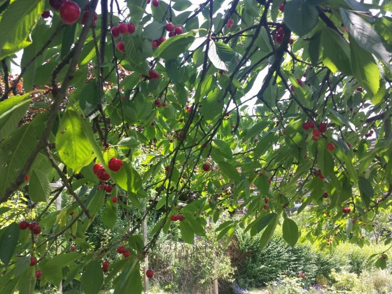 Kirschen: Giorgia (laut Schild ist es eine), Samba und Satin sind reif / dunkel gefärbt.