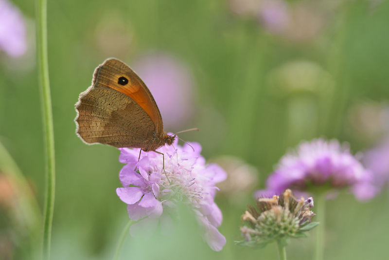 Hier erschien gestern das erste Große Ochsenauge, Maniola jurtina des Jahres, ein Männchen mit geringten Augen, nicht unbedingt typisch aber trotzdem sicher bestimmbar.
