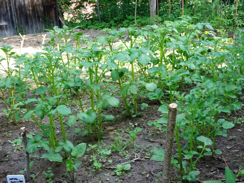 Bleibt zu hoffen, dass das Stickstoffangebot die nächsten 2-4 Wochen geringer wird. Je mehr Nitrat im Boden ist, desto weniger setzen sie Knollen an. Ammonium ist ok, das hat nicht viel Auswirkung auf den Knollenansatz. Bis zu den ersten Blütenansätzen brauchts noch 3-5 Blätter, ab der Blüte wachsen unten schon die Knollen.