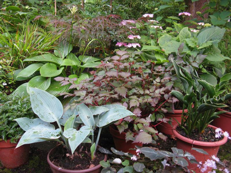 Kein Qualitätsfoto aber beim Gießen meines Topfgartens kam mir heute die Frage in den Sinn, ob man mit den richtigen Sorten nicht doch noch jemanden für Astilben interessieren könnte, der oder die meint sie würden bei ihm bzw. ihr nicht wachsen oder würden zu viel Wasser benötigen. ;) :-\ ;)