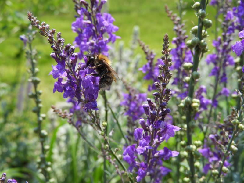 Hier tat sich gestern unter vielen anderen auch ein Kleiner Wollschweber, Bombylius minor an Echium vulgare gütlich. Diese Pflanze ist der Insektenrenner!