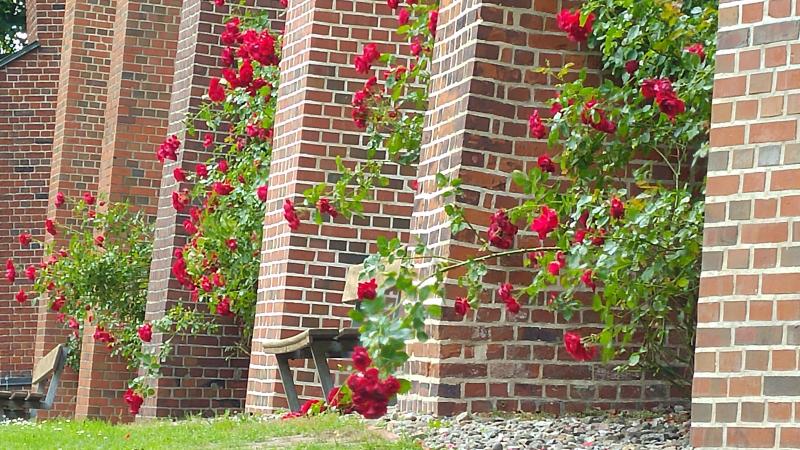 Eine wohl schon sehr alte, an einer Kirche blühende Rose ... Wer mag das sein? ???