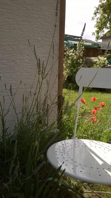 Pfingstsonntag-Überraschung: Roter Mohn in Stellplatzfugen - keine Ahnung woher der kommt :). Den gibt es weder in meinem noch in Nachbargärten. Ein Vogelimport?