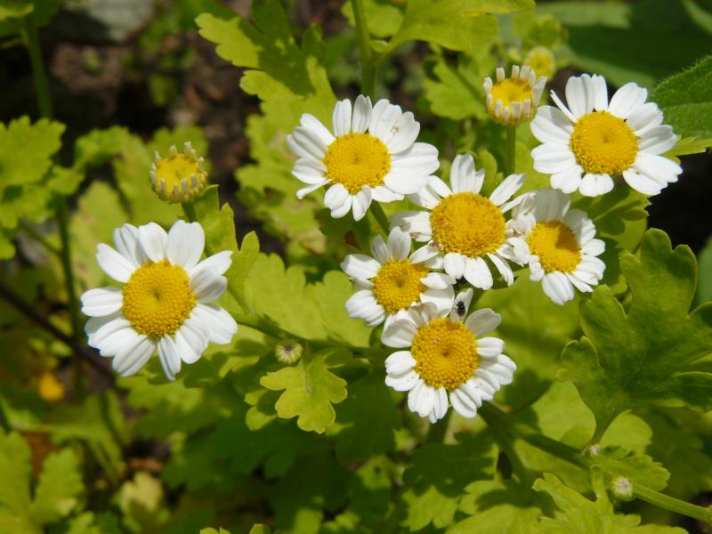 Das ist Mutterkraut, ein sehr schöner Begleitblüher im Staudenbeet, der sich selbst versamt und dort, wo er nicht erwünscht ist, auch schnell entfernt werden kann.