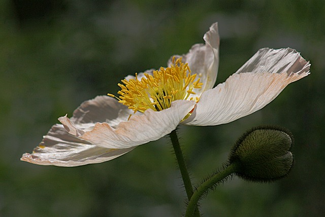 Das sind ja ungewöhnliche Ranunkeln in Deiner rosa Komposition, habe ich noch nie gesehen. Den Mohn habe ich gestern irgendwo in einem Kübel gefunden, vielleicht war er vorkultiviert. Die Knospenhüllen sind so schwarz behaart, also keine EBV-Erscheinung. Bei dem Bild vom Mohn im Gegenlicht heben sich die Härchen besser den Hintergrund ab. (Interessanterweise sehe ich erst hier an den Blütenblättern einen rosa Schimmer, in der grellen Sonne hätte ich schwören können, sie seien weiß.... )Liebe Grüße, Artemisia