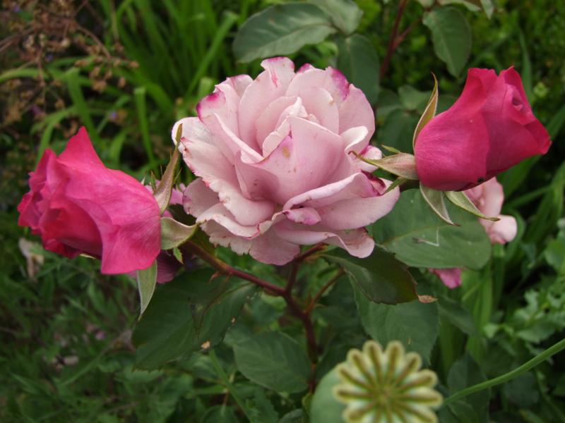 Ich mag ja diese rosa Flecken bei vollaufgeblühter Rose nicht.Besonders schön ist sie in den verschiedenen Knospenstadien.