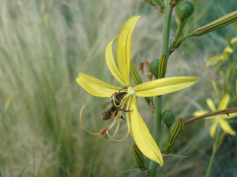 Asphodeline liburnica in der Abenddämmerung, reger Insektenanflug