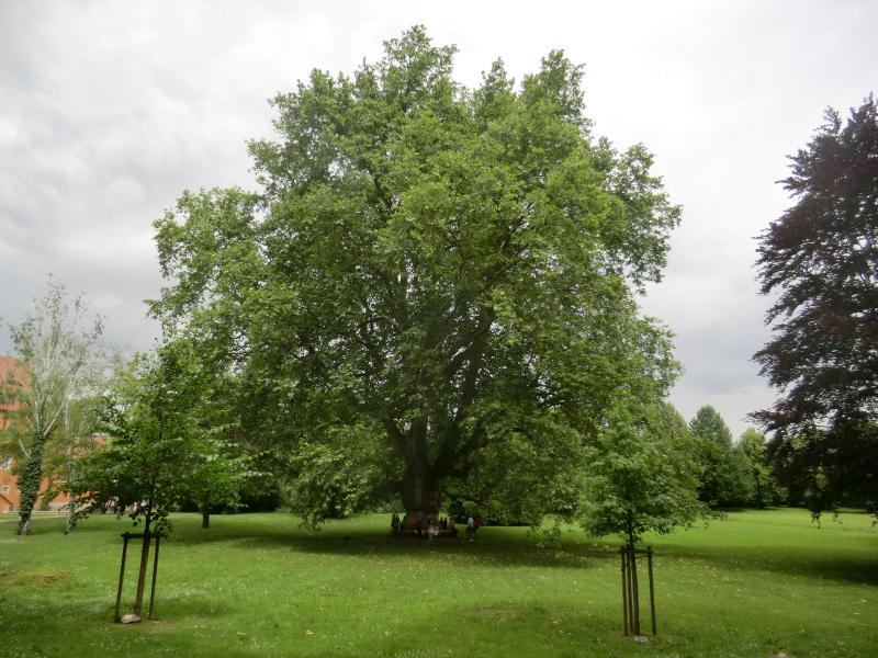 Meine Lieblingsplatane steht im Herzogspark. Die ist allerdings zu groß, um auf ein Foto zu passen. Und von weiter weg sieht man nicht, wie groß sie wirklich ist.
