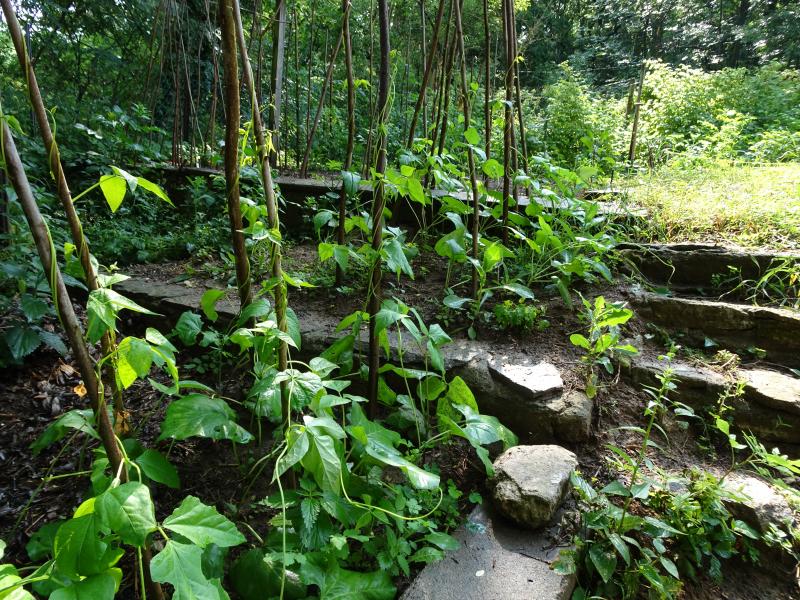Wenn Du die Prunkbohnen rein erhalten willst, stehen die zu dicht