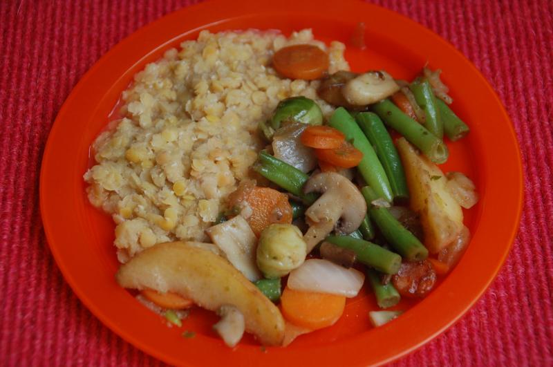 rote Linsen und Gemüse-Pilz-Pfanne