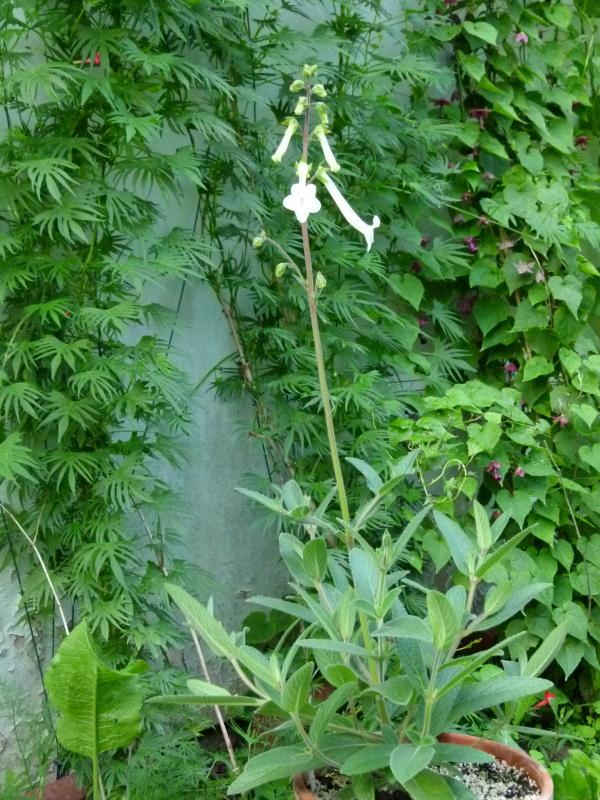 ab Topfrand z. Zt. gut 60 cm hoch und an den Seitentrieben voller Knospen. Irgendwie elegant proportioniert, schönes Laub, interessante Blüten.....