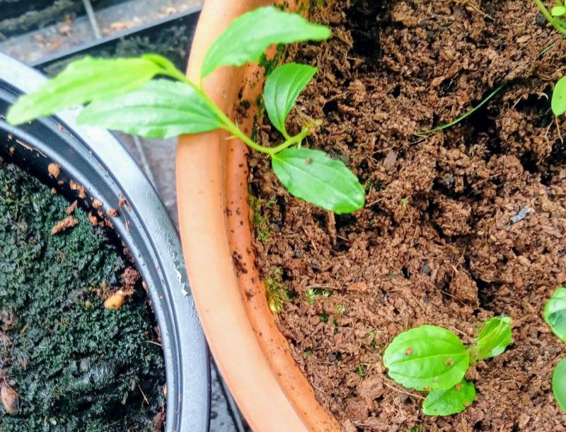 Hier kommen die echten Jujube-Sämlinge (Sie wachsen im gleichen Topf, wie die Apfelsämlinge, daher mein Fehler).