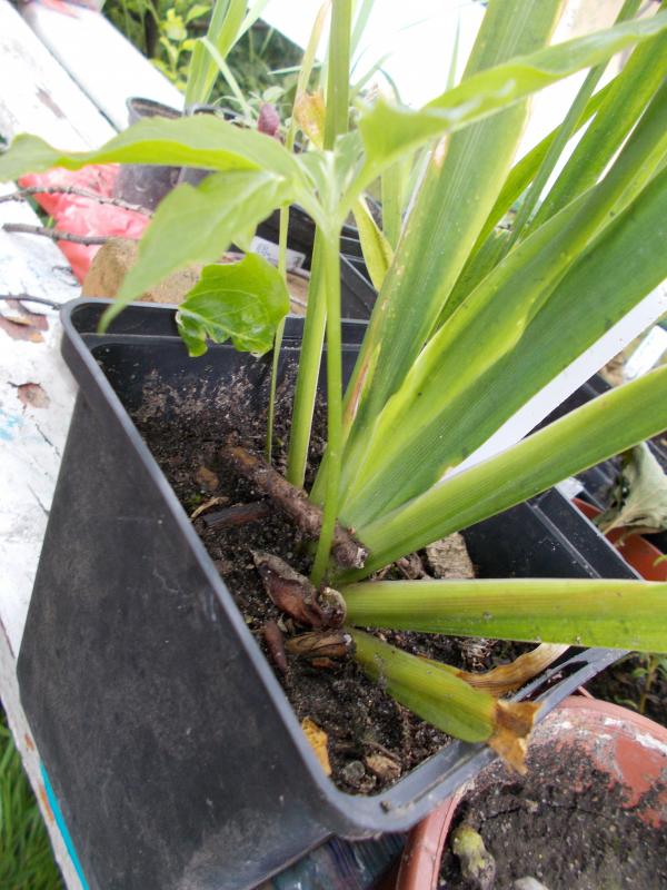 In einem der Dietes-Töpfe von tiarello vom Hausgeisthausen-Treff (danke nochmal!) ist ein blinder Passagier mitgekommen. So sieht die Blattebene aus.
