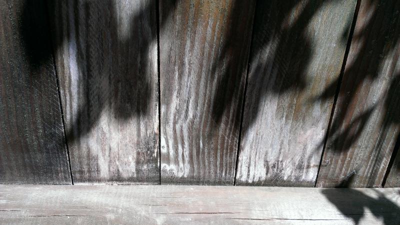 Die Bretter ziehen die Feuchtigkeit am Hirnholz, und egal, ob das nun Schimmel, oder Pilz ist, da ist zuviel Feuchtigkeit
